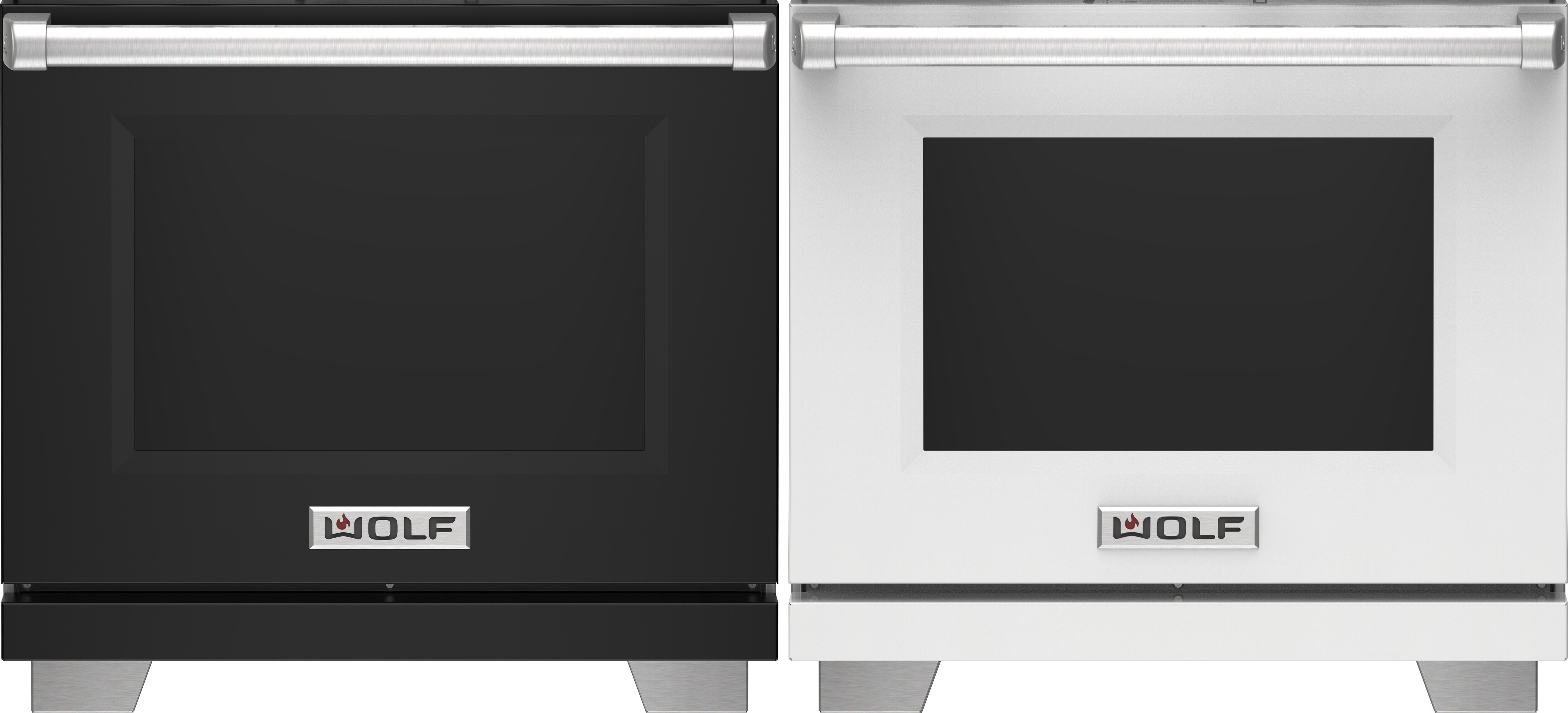 Personalize the look of your Wolf Range to match your kitchen design and style with door and skirt kits in lustrous white or black.