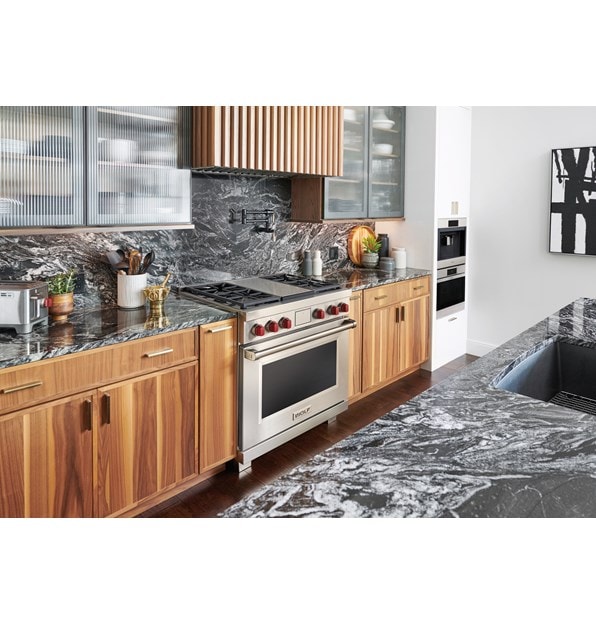 - Wolf’s Dual VertiFlow™ convection system provides reliably even heat, reduces hot and cold spots, and enables consistent multi-rack cooking
