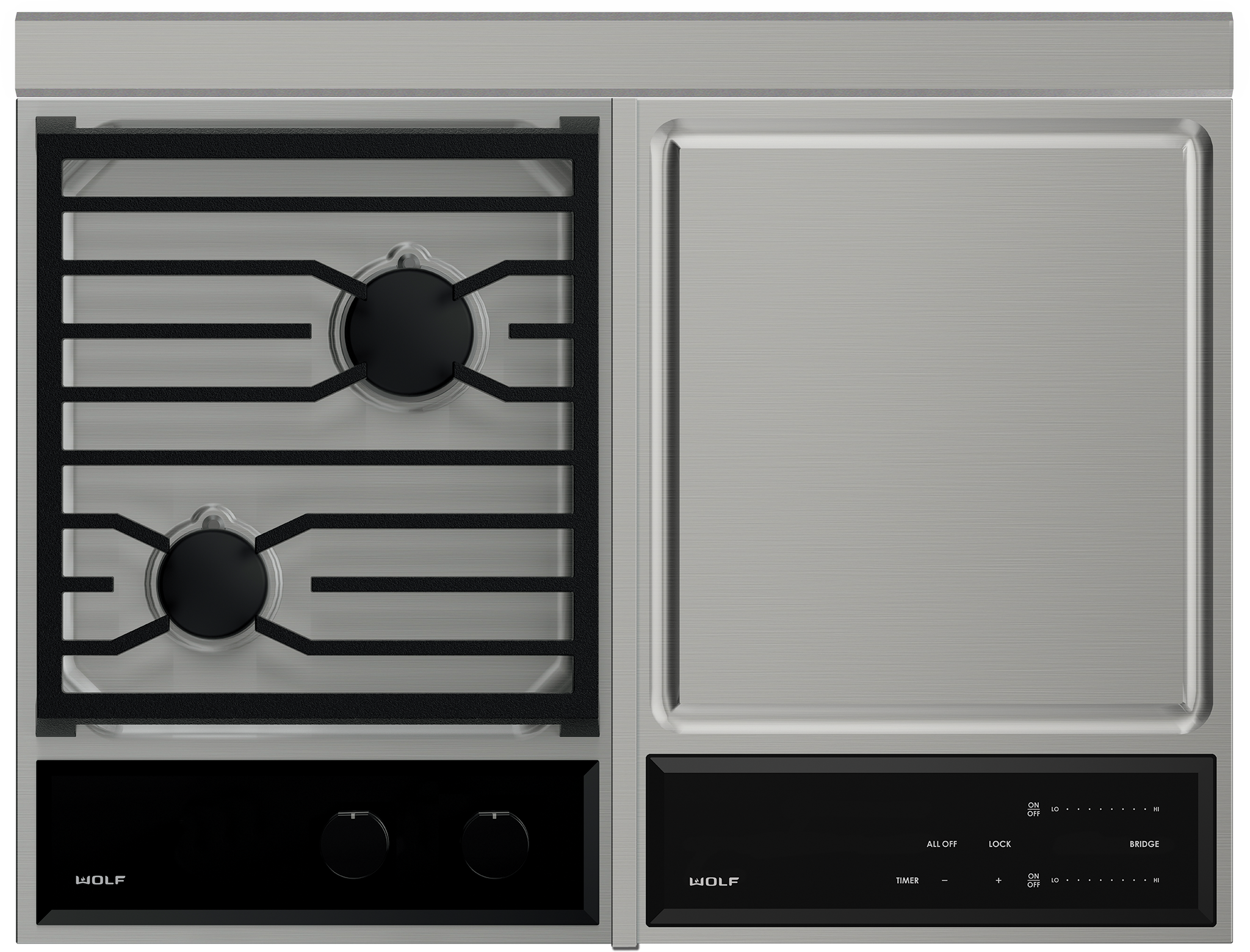 Use this stainless steel trim piece to eliminate the gap between two cooktops or modules to provide a nicely finished look when there is a downdraft present.