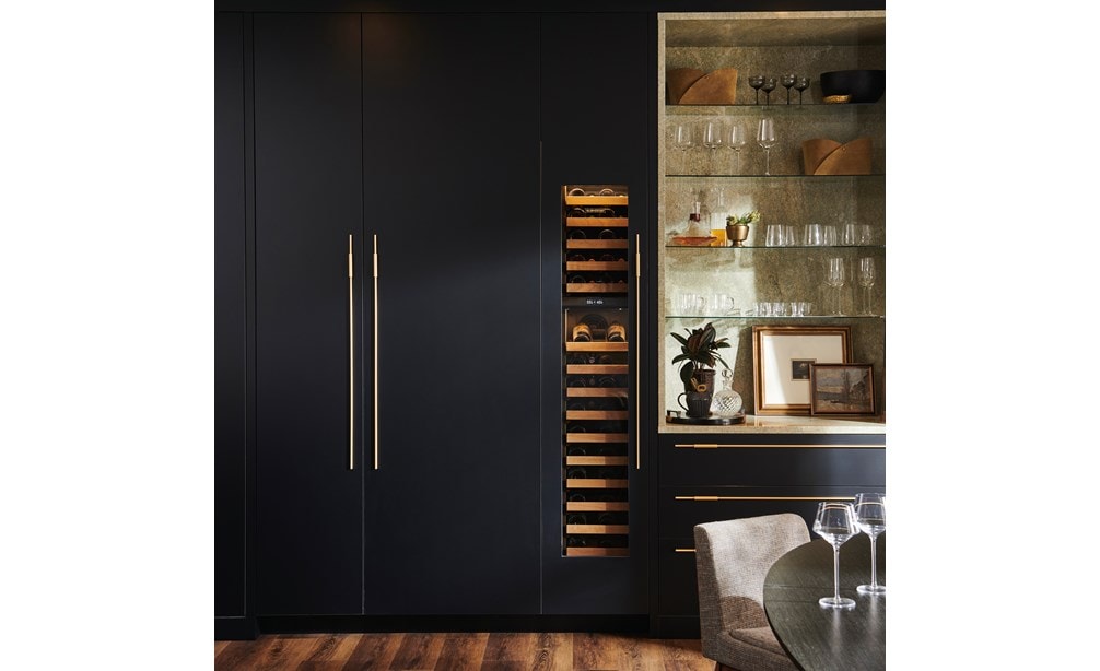 - Full-extension wine racks provide easy access to standard-size bottles, half bottles, and magnums without agitating others