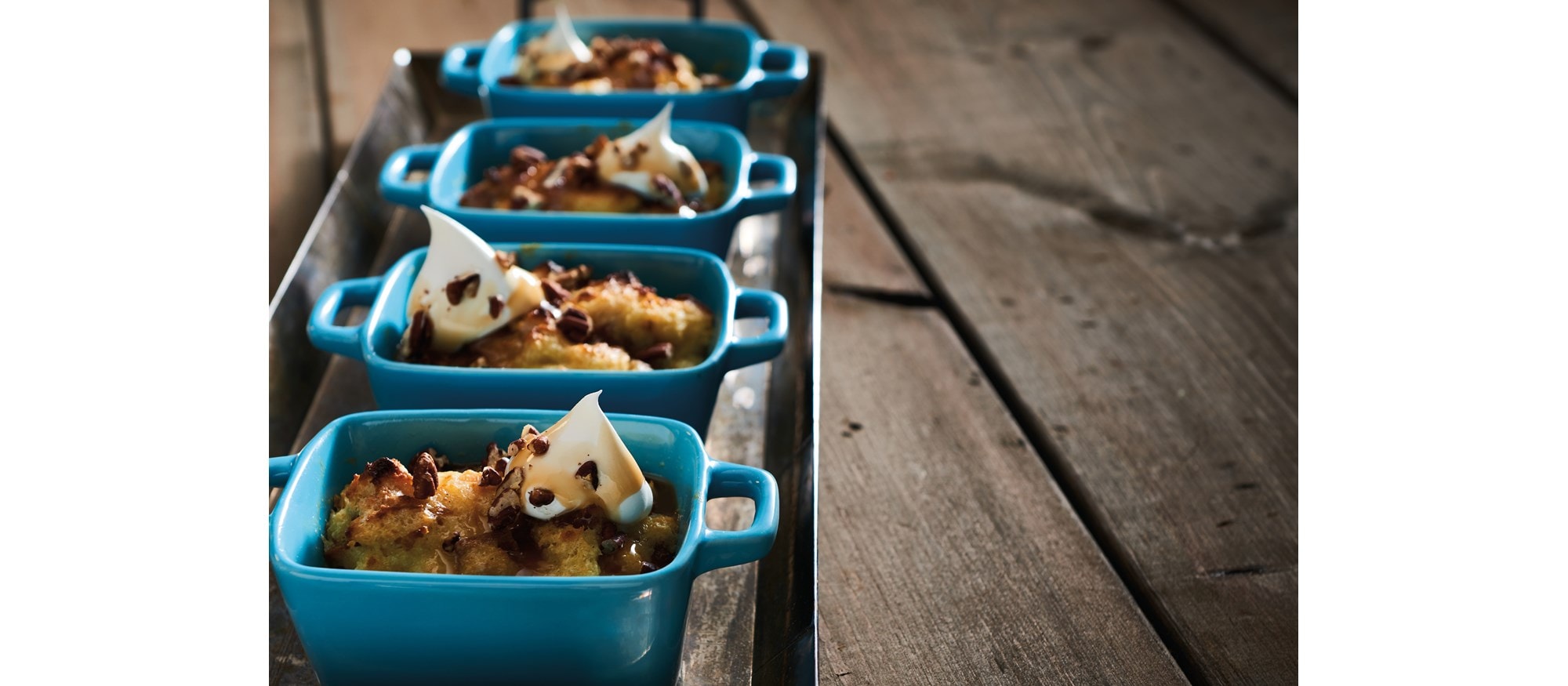 - Pour 1 to 2 cups of bread pudding mixture into dishes. Bake 16-18 minutes, or until golden brown.