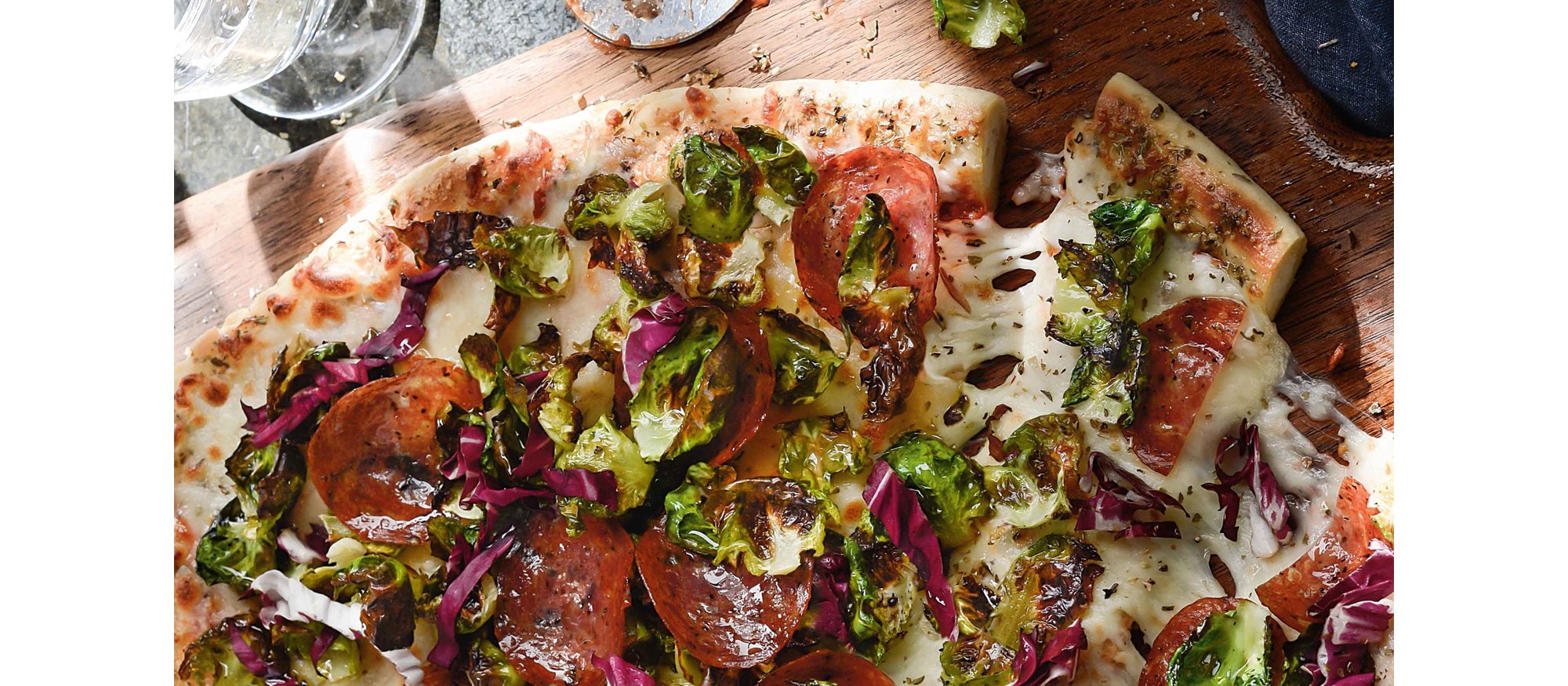 - Slide the pizza off the pan and onto a cutting board.