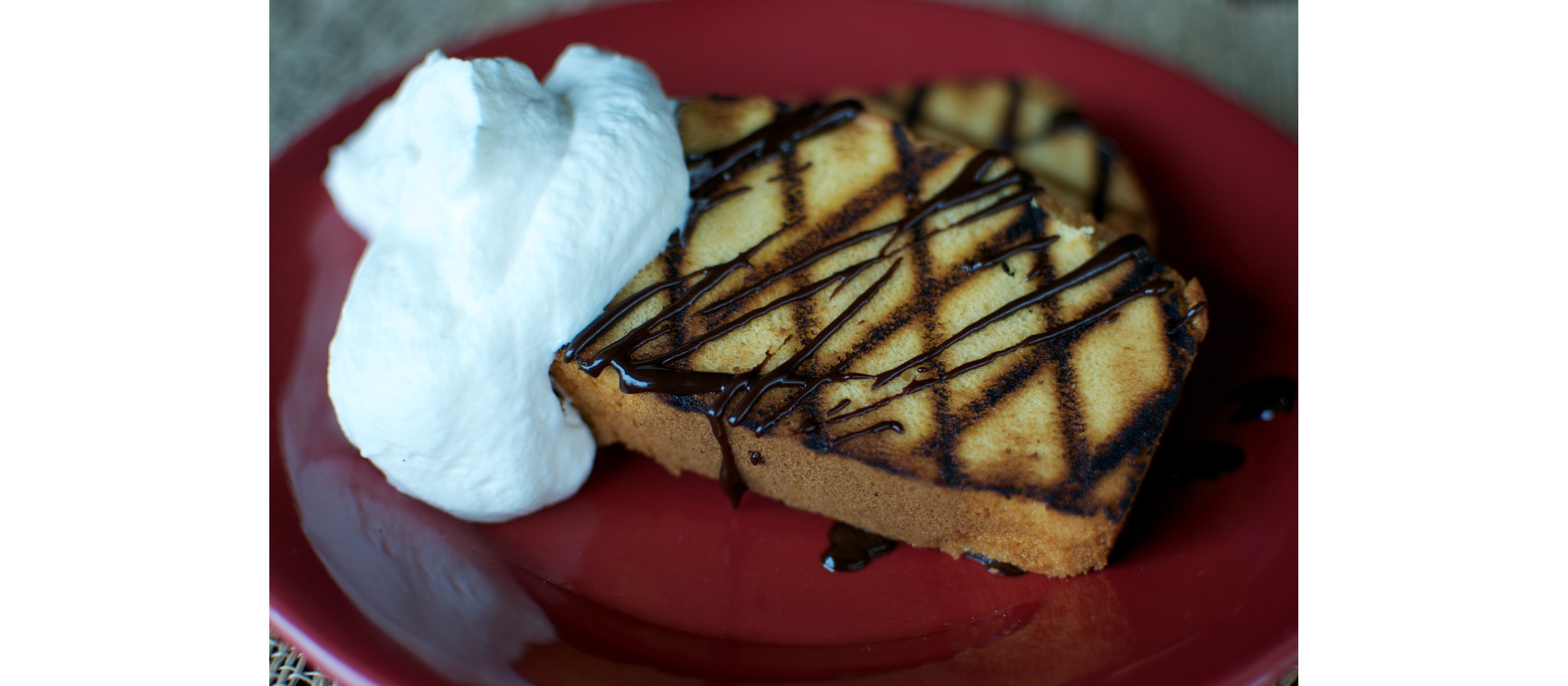 Grilled Poundcake with Chocolate Sauce and Whipped Cream