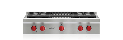 Wolf 36" Sealed Burner Rangetop - 4 Burners and Infrared Charbroiler (SRT364C)
