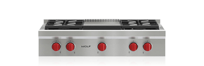- Coordinate all of your appliances with Wolf stainless or black knobs