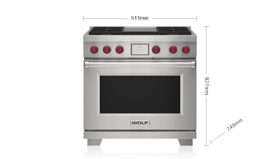 91 cm Dual Fuel Range - 4 Burners and Infrared Teppanyaki