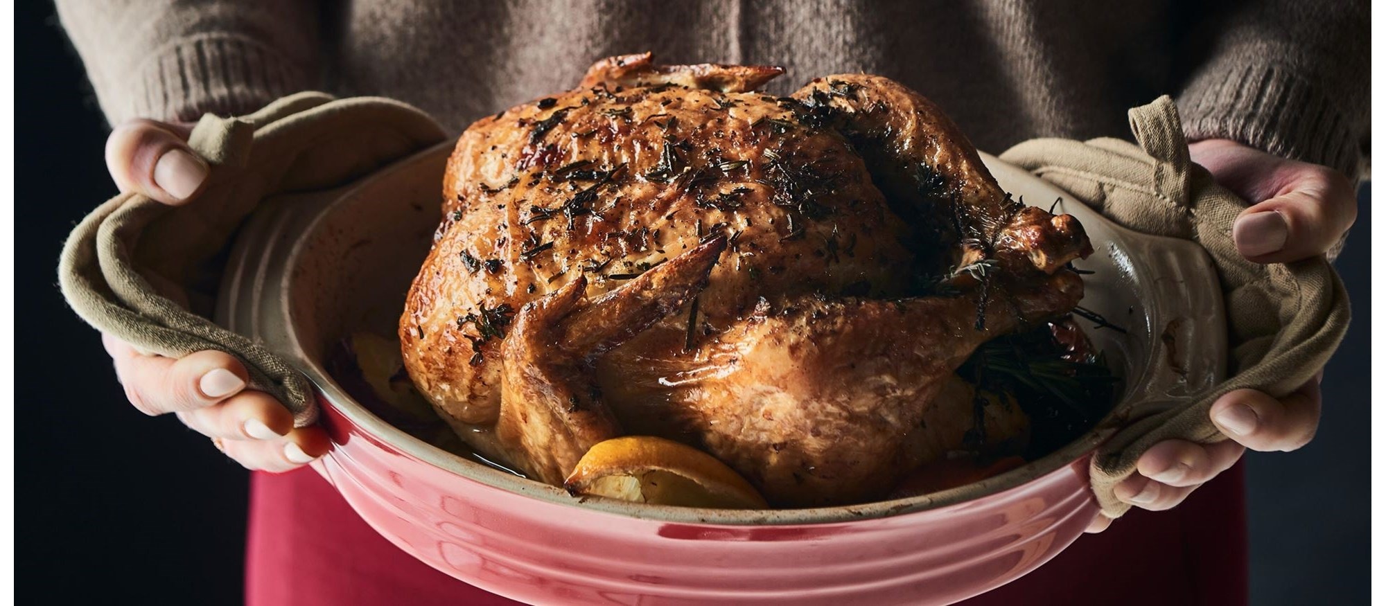 - Stuff parsley, rosemary, thyme, lemon, and smashed garlic inside the chicken. Truss the chicken closed with cotton kitchen twine. Rub the exterior of the chicken with one tablespoon of olive oil. Liberally season the chicken with salt and pepper.